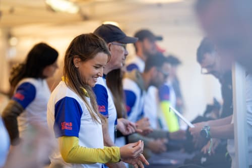 You control the identity cards, the obligatory material... You put in place the chips of chrono, give the envelope number and the tee-shirt to the runners.